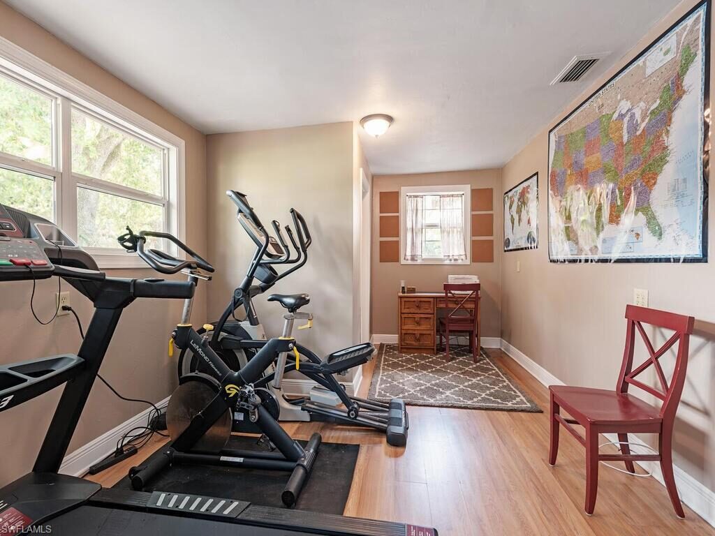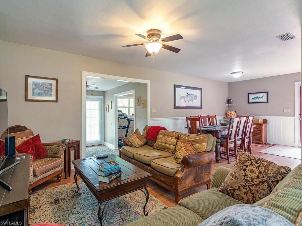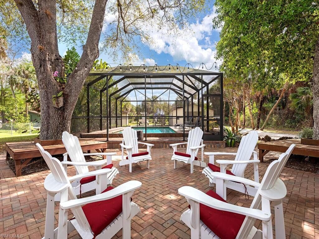 23rd Street SW is a phenomenal and convenient location close to downtown Naples. This 3 bedroom plus den ranch styled pool home sits on abeautifully cleared lot loaded with fruit trees. Boasting a 900 square foot pole barn built in 2015 and outfitted with plumbing and electric, raisedstorage shelving, reverse osmosis water filter. A spacious deck shaded by mature trees leads to a screened saltwater heated pool. The homehas been well maintained and has a new roof in 2022. A paved circular driveway leads to a cleared area out of view. Perfect for boat and RVstorage and outfitted with electric hook up. There is an assumable VA loan at 3.5% for approximately $308,000 available to a qualified buyerthrough Rocket Mortgage.