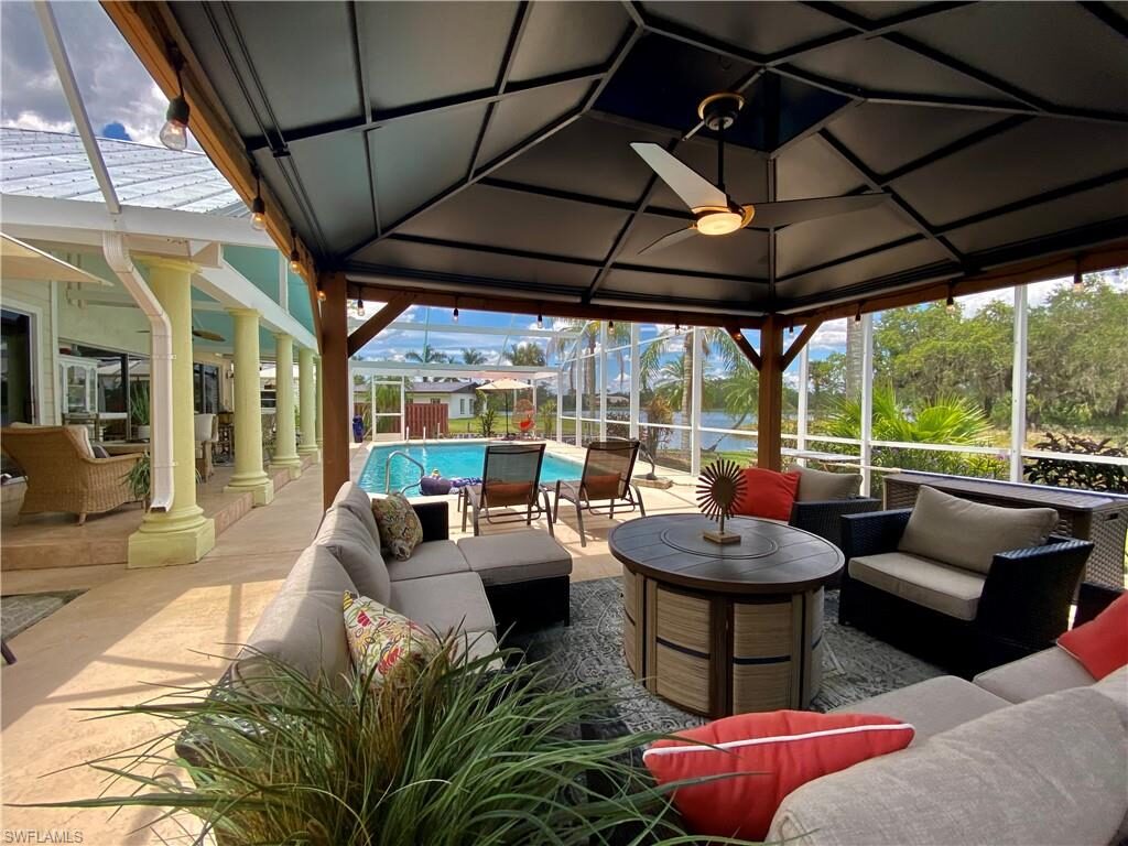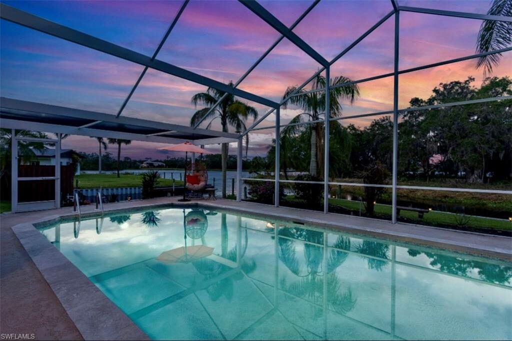 Price Improvement! Majestic Direct River Access Pool Home! Are you ready for life along the Caloosahatchee River? Nestled in a boat basin, offa peaceful private road, surrounded by the sounds of nature, as the sun peers through mature oaks lies this waterfront charmer. This homeexudes Nostalgic Old Florida charm within its 3 bedroom, 2 bath, and spacious living room showcasing impressive river views at every turn.Features included Newer Metal roof and pool screened enclosure, Updated electric box, auxiliary sub-box at dock and new outdoor seawalllighting, New granite countertops, stainless appliances, pool and patio resurfaced, New filterless water filtration system, New Irrigation pump, 2outdoor sheds and more! The custom master closet is an Absolute Dream with its shelving and step-in extension, it’s sure not to disappoint.Enjoy the twinkling reflection off the water at sunrise to the lights along 160+ feet of sea wall sparkling at twilight. This home was made foroutdoor entertaining on its expansive lanai and spacious pool deck complete with a pavilion for additional seating, ceiling fan, and outdoorlighting. Don’t wait and miss the opportunity to make this home yours